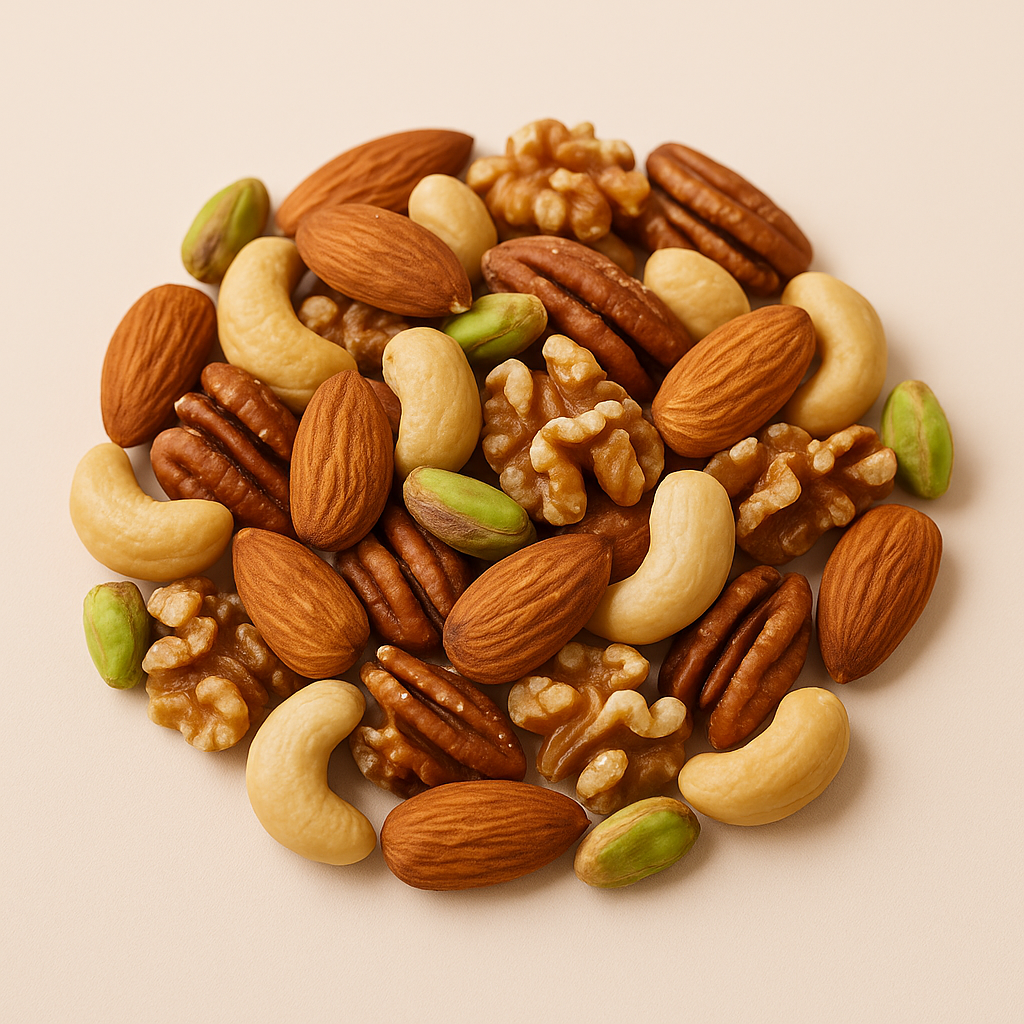 - Bevat amandelen, cashewnoten, pecannoten, pistachenoten en walnoten
