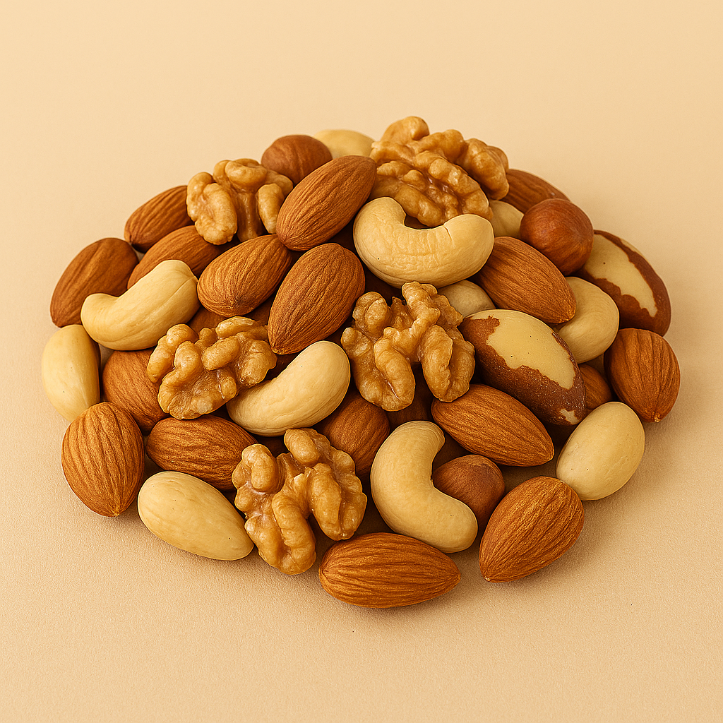 Amandelen, cashewnoten, hazelnoten, paranoten, walnoten